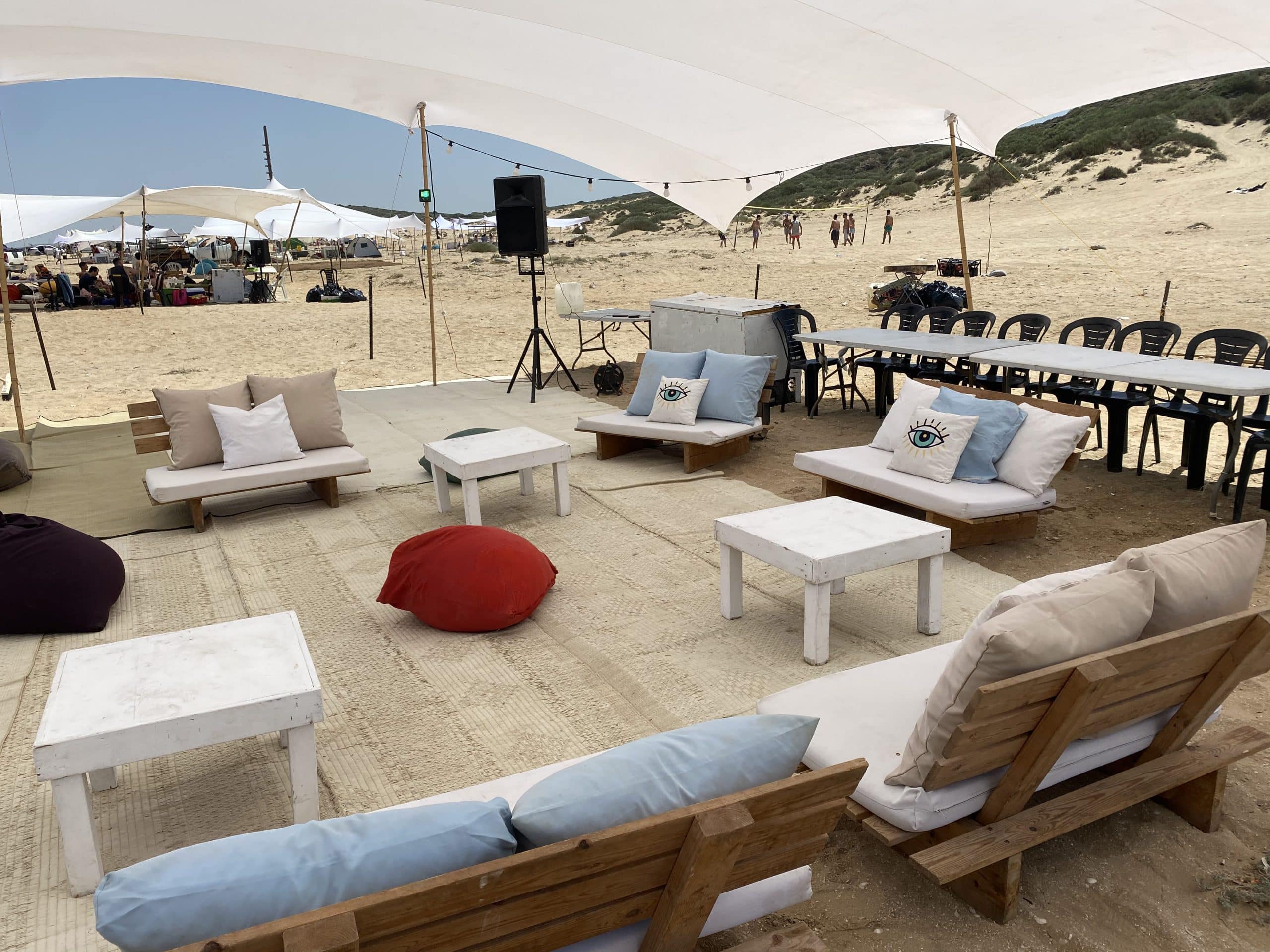 • אירועים שמיועדים לחוף הים נראים אחרת לגמרי כפינת זולות מאשר אירוע מוסדר עם כיסאות מתקפלים. זה הרבה יותר טבעי לשבת ככה וגם מנצל טוב יותר את הרכות של החוף והנינוחות הרוגעת של חוף הים. אפשר בקלות להוסיף לזה אטרקציות נוספות כמו בישול מזונות שונים על החוף לפי העדפתכם, וכל האירוע מתקיים במתחם מגודר ומסודר שיש לכם פרטיות בו והמון אפשרויות אירוח.